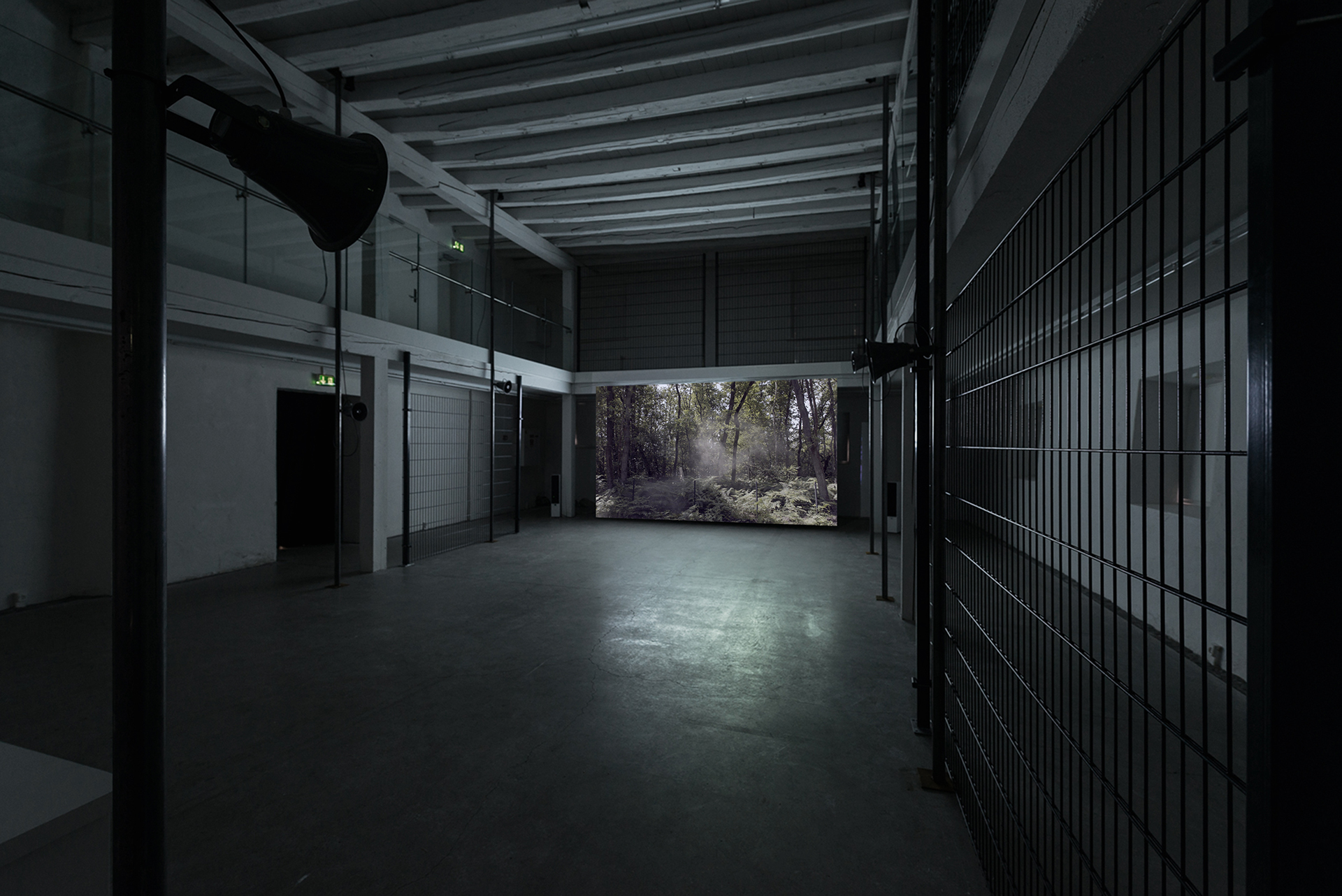 The video installation At the Fence, is taking it starting point at the recently erected wild boar fence along the Danish-German border. The video constructs and thematises various imaginary, fictive spaces around it. One fictive space is the romantic notion of the forest and wild landscape fable animals/masked figures. Another fictive space is the fiction itself that the fence will in fact be able to keep out ‘desirable’ visitors and ‘others’.