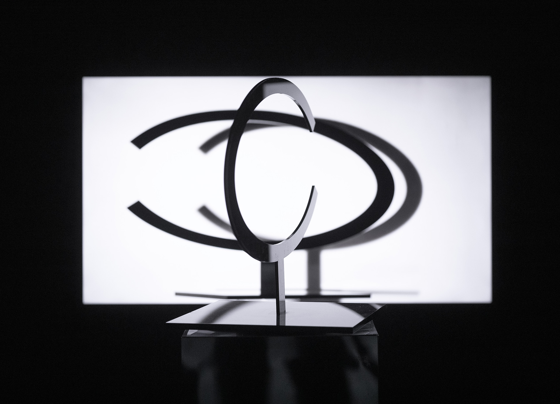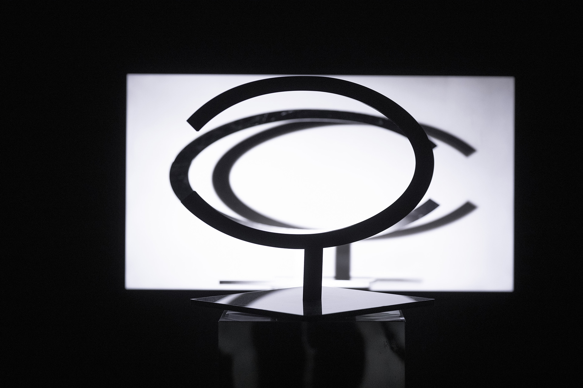 The Video sculpture Circle in Rotation has the focus on the displacement; on the relation between fiction and space, where forms are dissolved through movement, light, shadow and transparency.