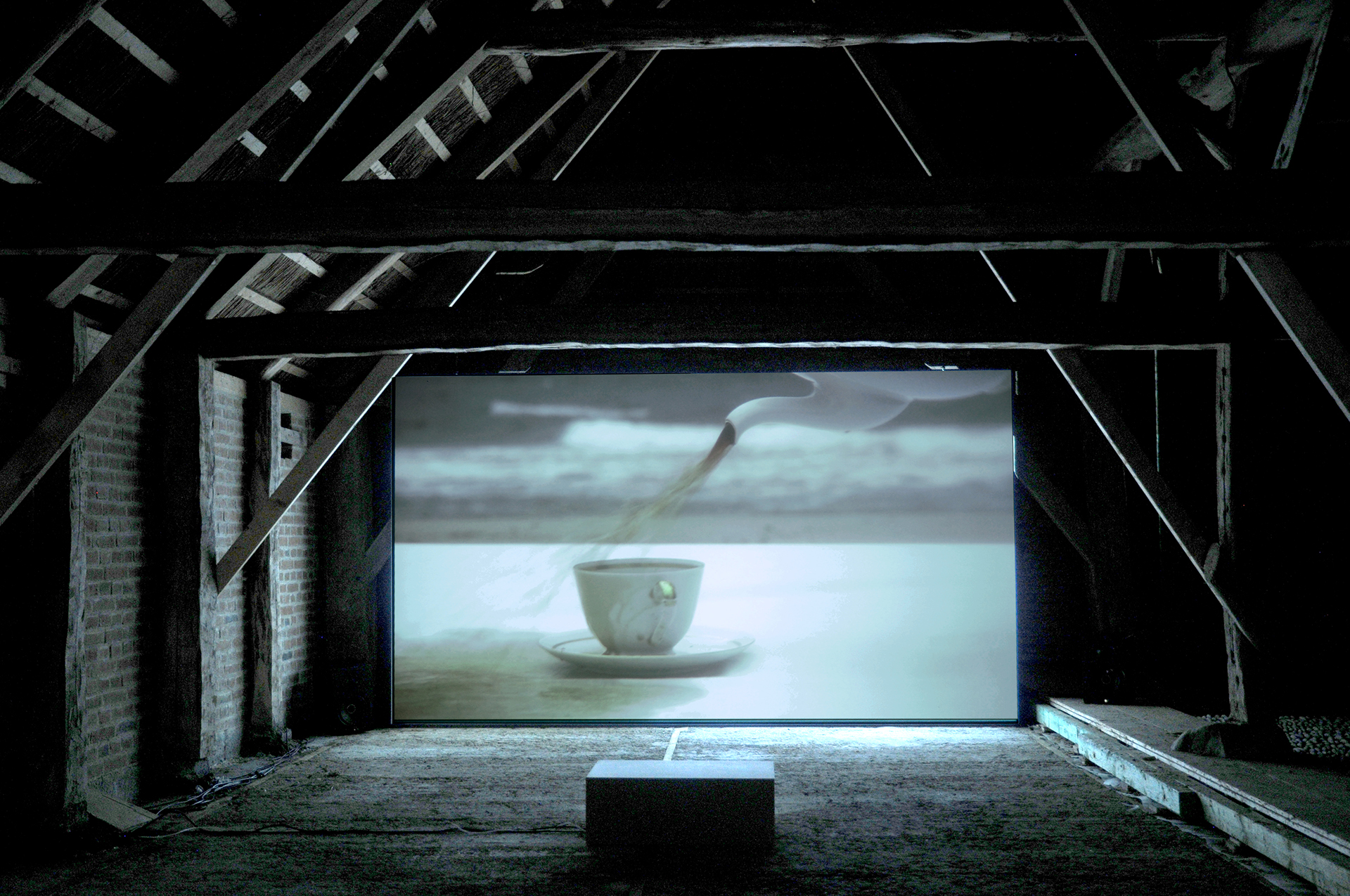 Parts of the things from the lunch table, plates, bottles and coffee cup, are blown in the river course and float out into the sea - are to be swallowed up.