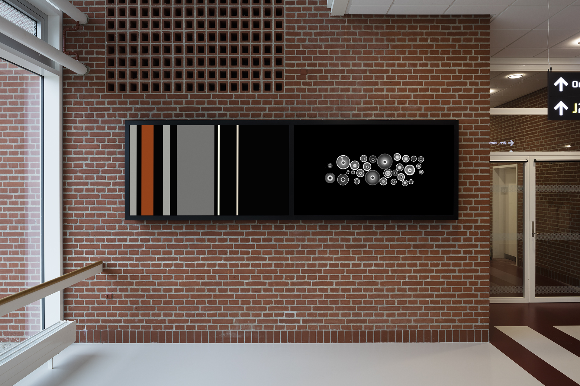 The public decoration CUTS and Flatten / STILLEBEN through the Z-Axis at the New University Hospital in Aarhus consist of video sequences on 2 large LED screens,